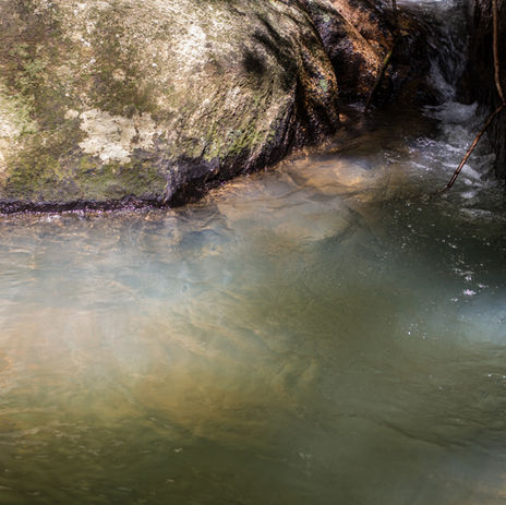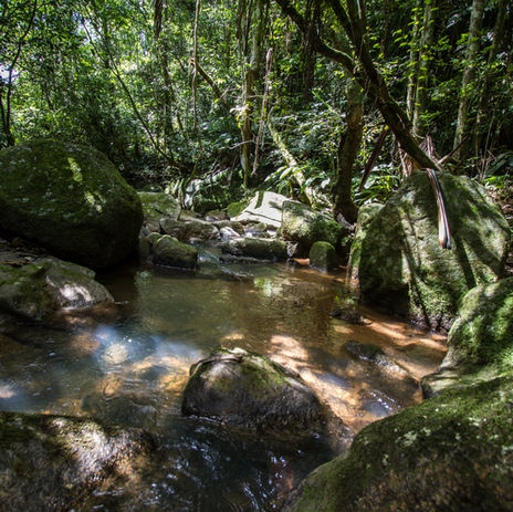 O riacho que percorre o terreno cria um som constante e suave,